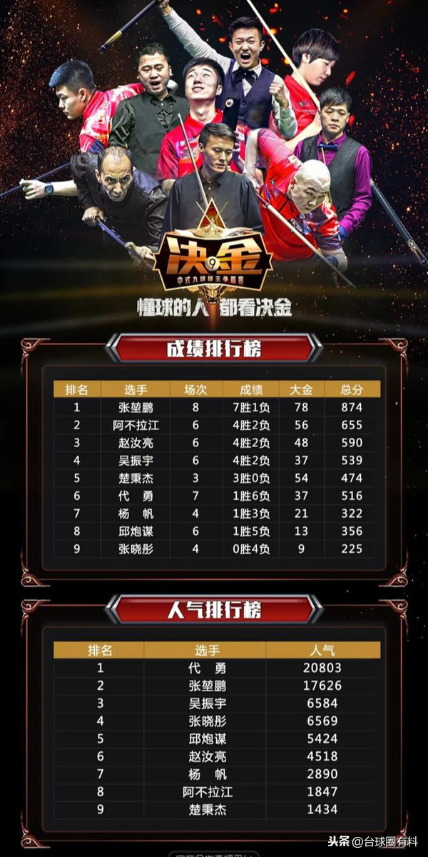懂球的人,都看决金。决金中式九球球王争霸赛第二季一经开播即引爆收视狂潮,成为现象级台球赛事。看直播感受热血大金、专业解说,请锁定“台球圈有料”抖音号,跟料妹妹一起,见证中式台球、中式九球走向世界、风靡全球。