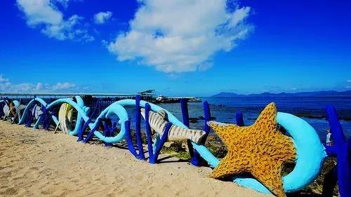 景点:景区中门墙绘→夏季码头保安亭→临海路沙滩→临海路椰子店→木牌爱心墙→渔村集市→百年珊瑚老屋→文创馆→西岛西路→西岛大桥→牛王岛→情人桥