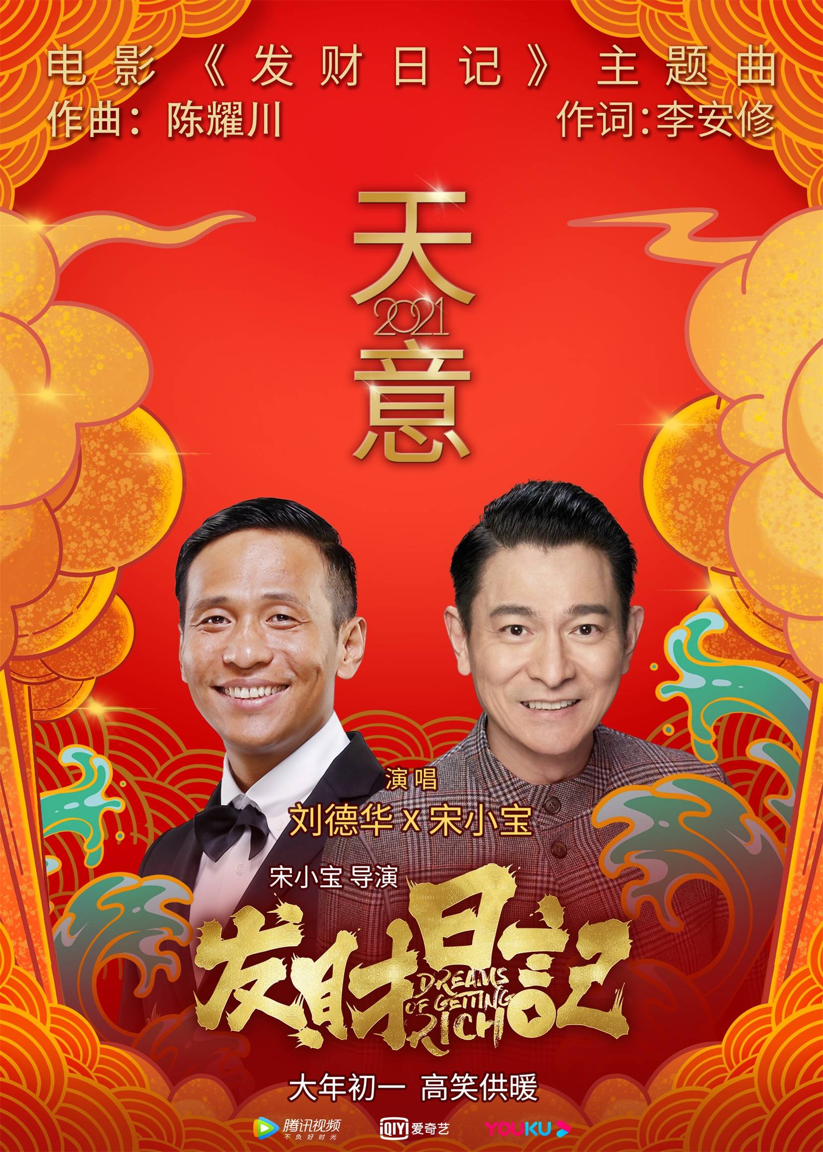 时光网讯 今日,由宋小宝执导的喜剧电影《发财日记》发布刘德华、宋小宝合唱的主题曲《天意2021》,两人重新诠释时代金曲,诉尽大时代下小人物的辛酸悲喜。