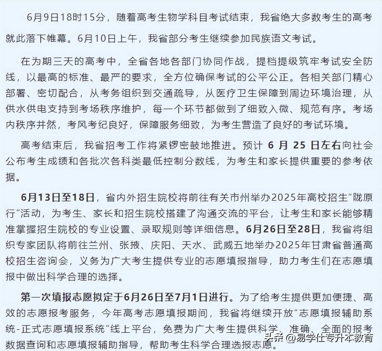 2025河南高考6月25日公布成绩,26日开始填报志愿!