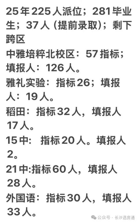 填报热度最高的学校:长郡外国语、中雅南校区,其他无需派位,直接录取。