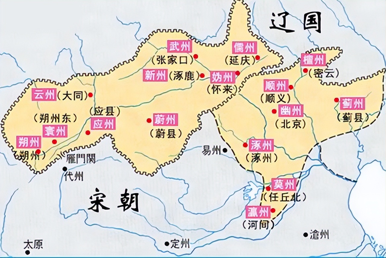 燕云十六州,是中国古代地理名称,特是指中国北方以幽州、云州等地的北方十六个州,分别是幽、蓟、瀛、莫、涿、檀、顺、云、儒、妫、武、新、蔚、应、寰、朔等州,这是北宋一朝从皇帝、宰相、文人武将到走卒贩夫,都梦想收复的地区。