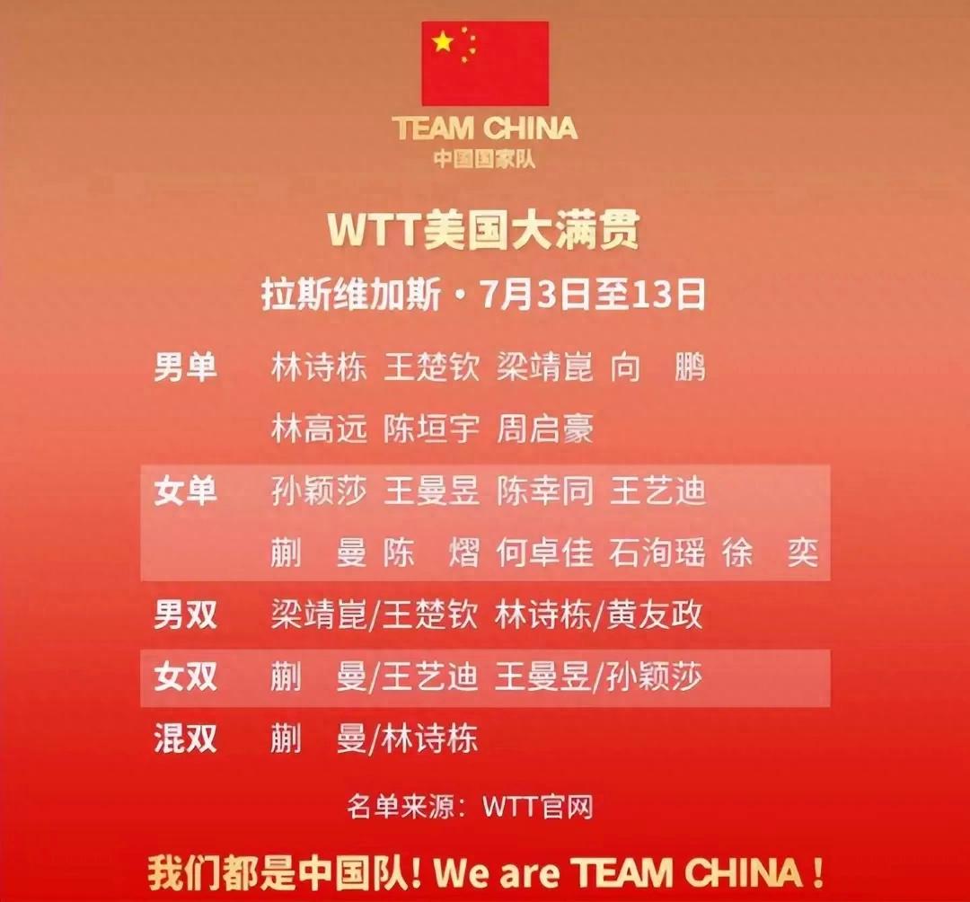 国乒出征大满贯:莎头缺席混双,WTT海报引争议,海外军团霸气