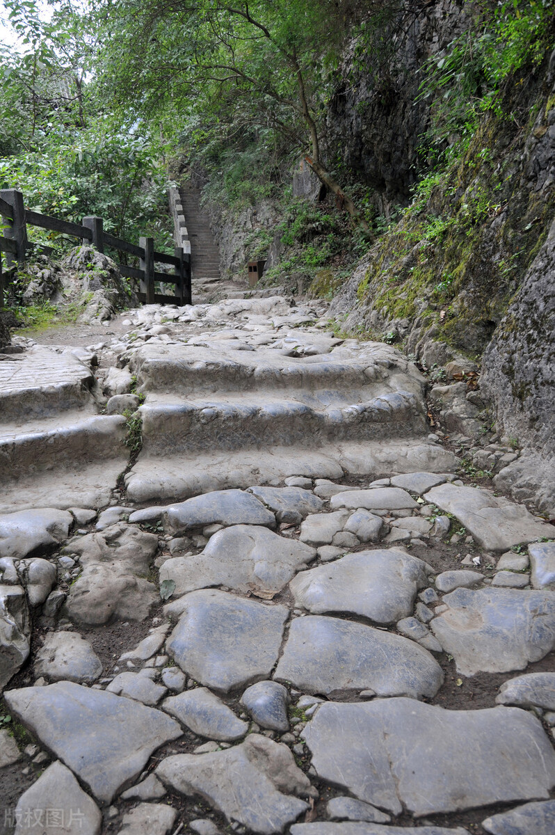 它是连接云南与内地最古老的官道,开凿至今已有2200多年;它的修建方式是最不可思议的,李冰父子利用热胀冷缩的原理,用大火烧岩石三天三夜,然后泼水让它出现断痕裂纹,于是凿出了这绝壁的岩石古道;它拥有最标准的尺寸,道宽五尺,古时骑马,五尺即够马转身,因太难开凿,故不再多凿一尺........