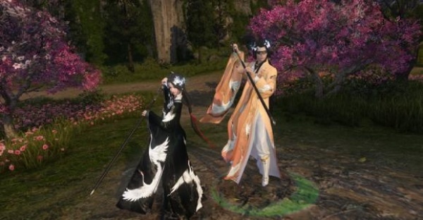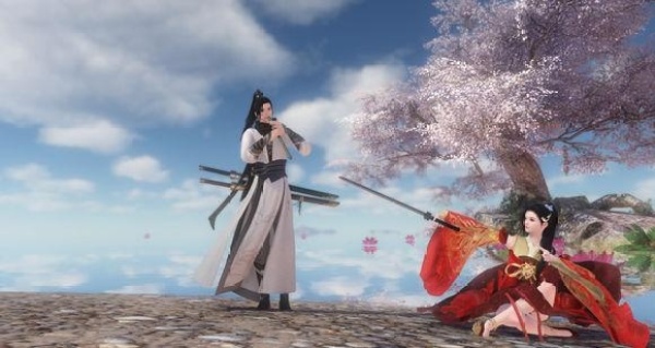 舞剑、弹琴、吹箫这些也都可以用来拍照秀恩爱,利用游戏中各种场景的特效,比如在庄园中樱花飘落之下,一个人在吹箫伴奏,另一人闻声起舞,有一种在世外桃源中,像极了武侠小说中那种只羡鸳鸯不羡仙的神仙侠侣有木有。