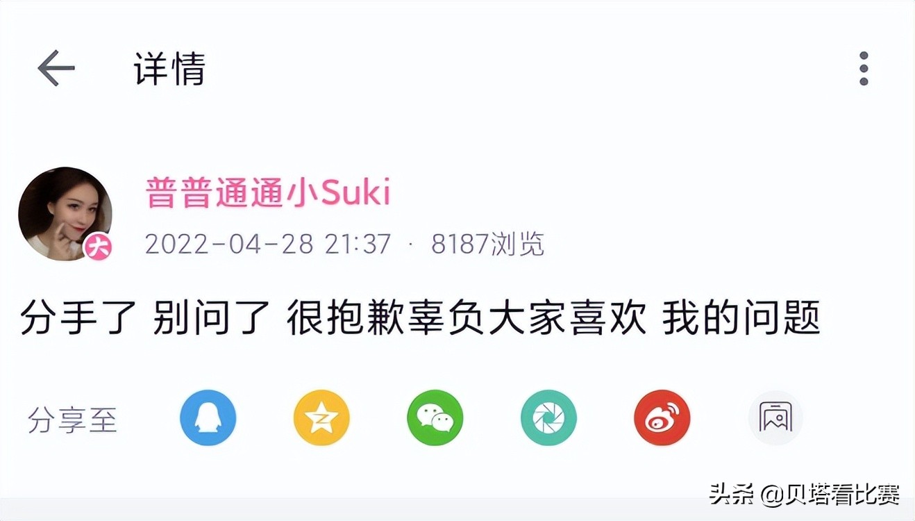 消息来自Suki的B站动态,她先是发了一条动态表示和狼行已经分手了,并且主动背锅,是自己的问题,很对不起大家。