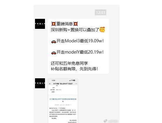 根据媒体的报道,在深圳的销售微信群中,特斯拉就为大家带来了一个重磅的优惠,甚至还对外表示,深圳新购和置换可以两者重叠在一起。