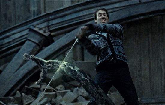 在伏地魔与霍格沃兹的终极大战中,纳威拿到格兰芬多的宝剑,并用宝剑了结了纳吉尼