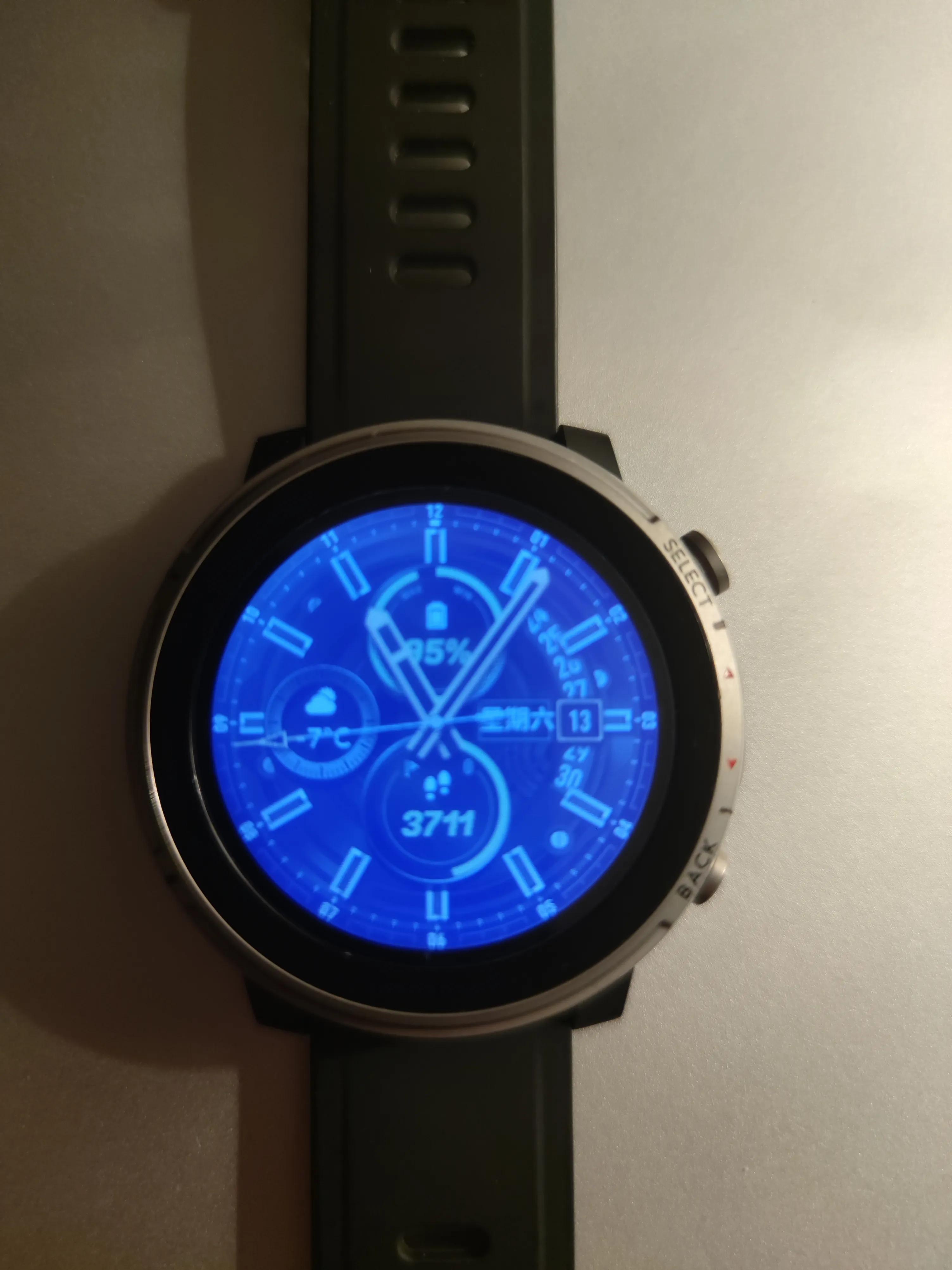 刚开始我对给出的表盘还是很满意的,可是佩戴了一段时间后,嗯...感觉没有心意了,后来我把手表连接了wifi,下载了几款官方表盘,自然不满意,苦苦寻找,未果,不过也在各大发烧友的那里获得了几款表盘。现在我的手表表盘是这样的