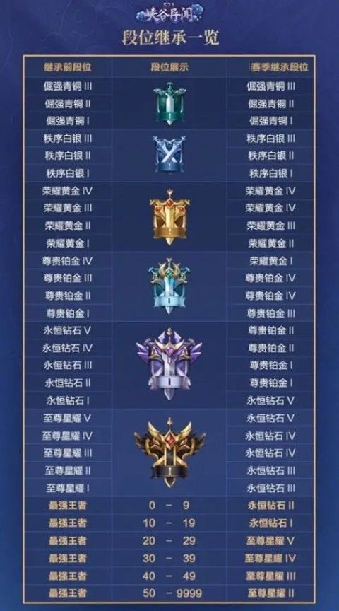 温馨提示:王者荣耀段位继承奖励是按照当前赛季的最高段位来计算的,不过段位继承则是按照最后结算时间的段位,所以千万别以为自己本赛季上过高段位就可以随便输了哦!目前已经临近S21赛季结束时间,各位玩家可别乱浪乱玩,导致在赛季末掉分出现继承段位较低的情况哦!