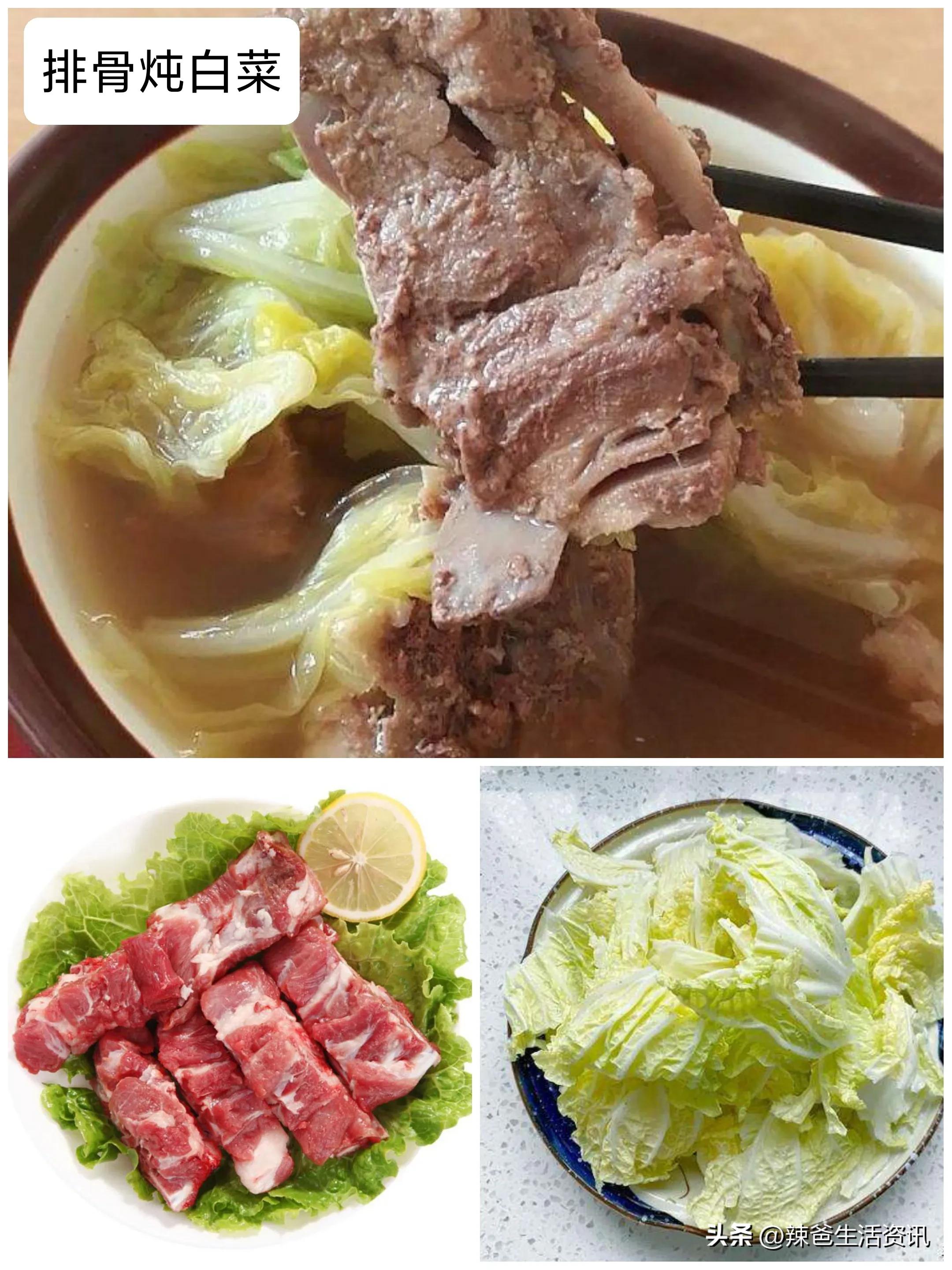 排骨炖白菜,是北方著名小吃,山东青岛的地方名吃“排骨米饭”中就有排骨炖白菜。采用猪龙骨、肋排或者颈骨炖煮而成。排骨香气四溢、白菜松软香甜,汤鲜香而浓郁,是吃米饭的绝配,是青岛当地十大名吃之一。排骨炖白菜做法简单,是居家生活常吃的美味。