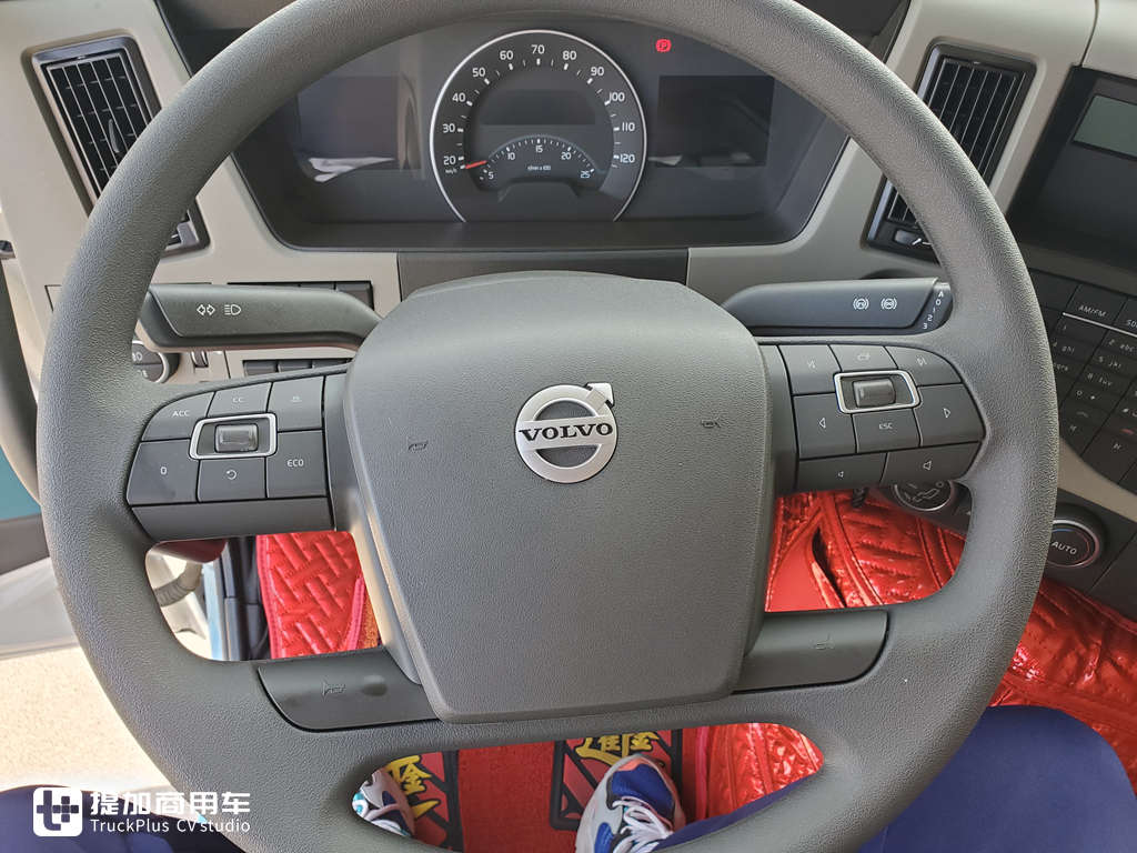 配置的多功能方向盘以及仪表盘也与老款无太大差异,沃尔沃的多功能方向盘非常人性化,多数功能按键均集成在上面,同时设置单独的电、气喇叭开关,减少工作台上的按键,让驾驶员驾车时能够做到触手可及。