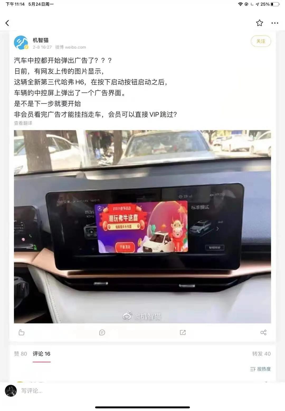 车内大屏开机出现广告!终于,我们最担心的事情还是发生了