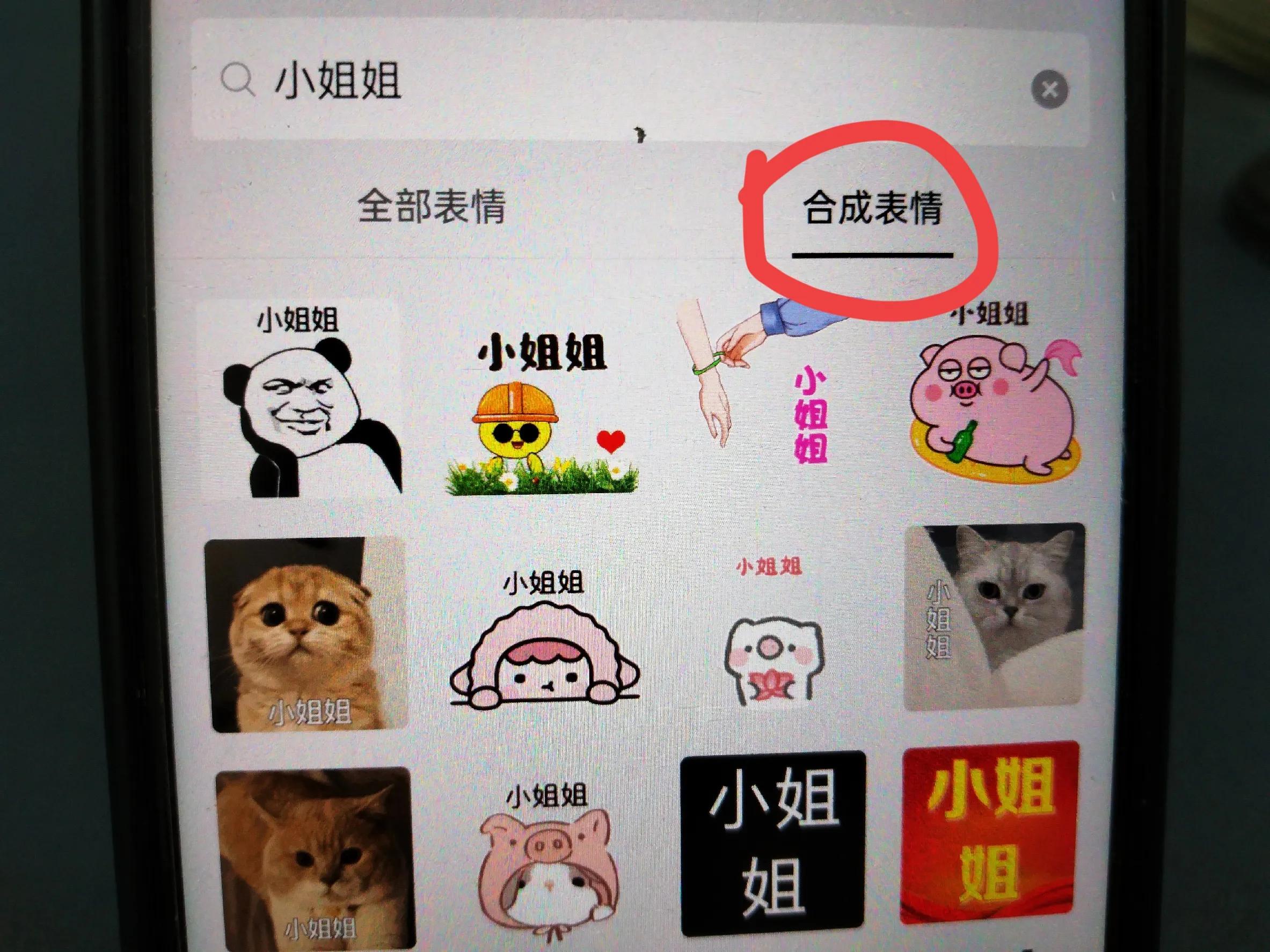 在这里主要可以搜索或合成表情。比如我们搜索“小姐姐”,哎,这里就有好多关于小姐姐的图片供我们选择。点一下就能够直接发送,是不是很方便?(如上图所示)
