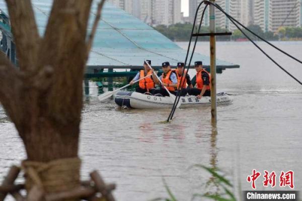 为防止城区电线电缆落水泡水等突发险情,当地警方多次开展皮划艇作业,有效排除各种汛期安全隐患。国武 摄