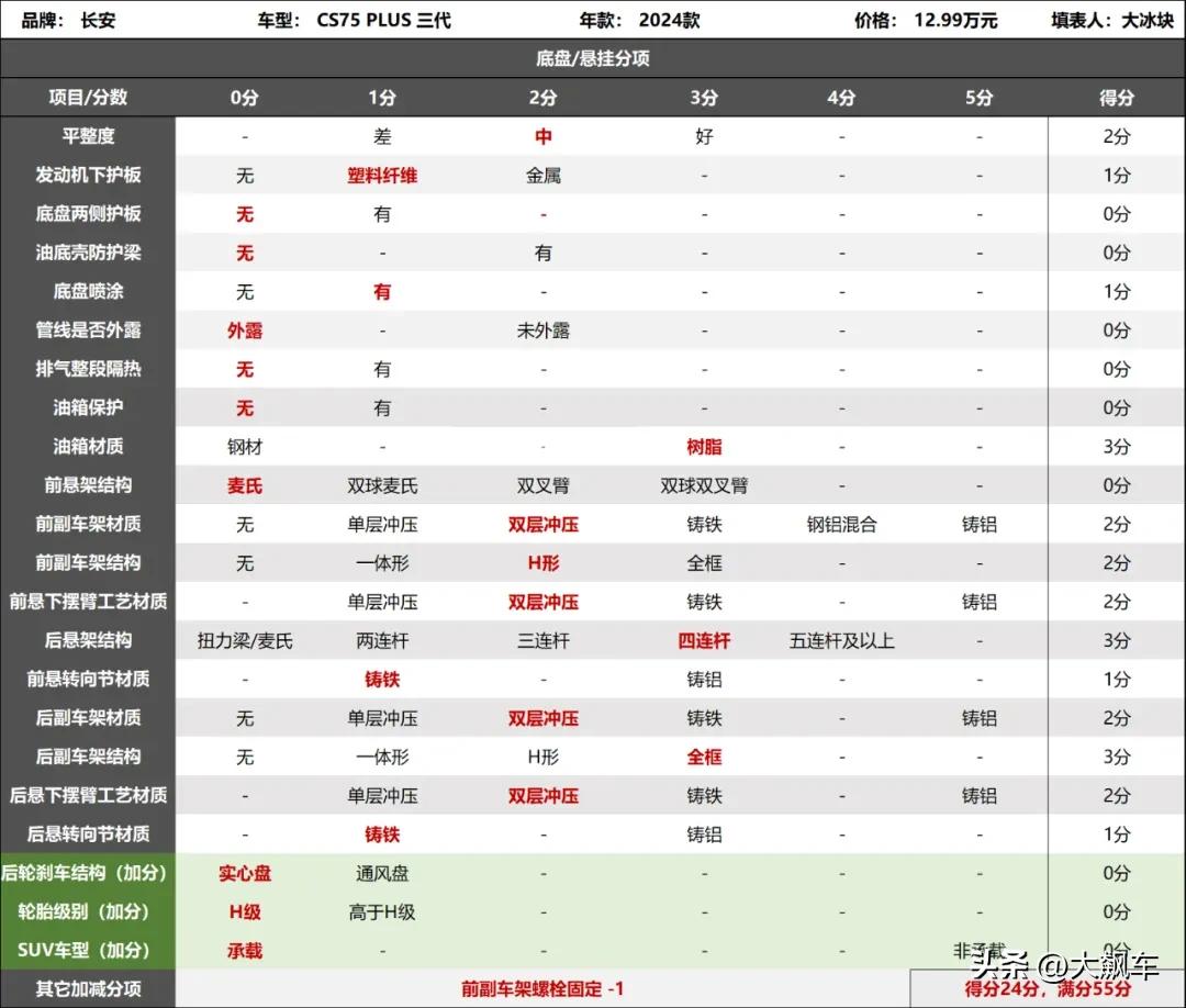 2024款长安CS75 PLUS第三代底盘评分