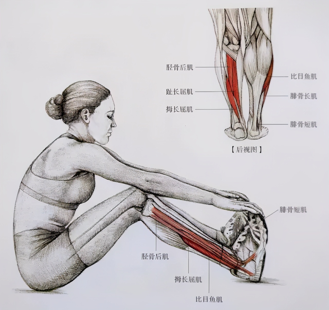 下图中的直腿坐姿拉伸主要针对小腿腓肠肌。所谓腓肠肌你可以理解为肉眼可见的小腿肚,对于肌肉腿来说,这种拉伸效果不是很大,但是也可以做。