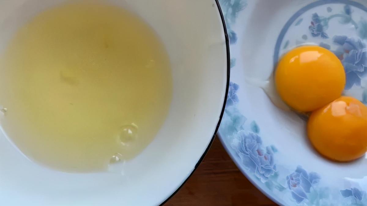 3、将准备好的两个笨鸡蛋打碎放在碗中,注意将蛋黄和的蛋清分离开来,然后分别放在不同的碗里,用筷子搅散。