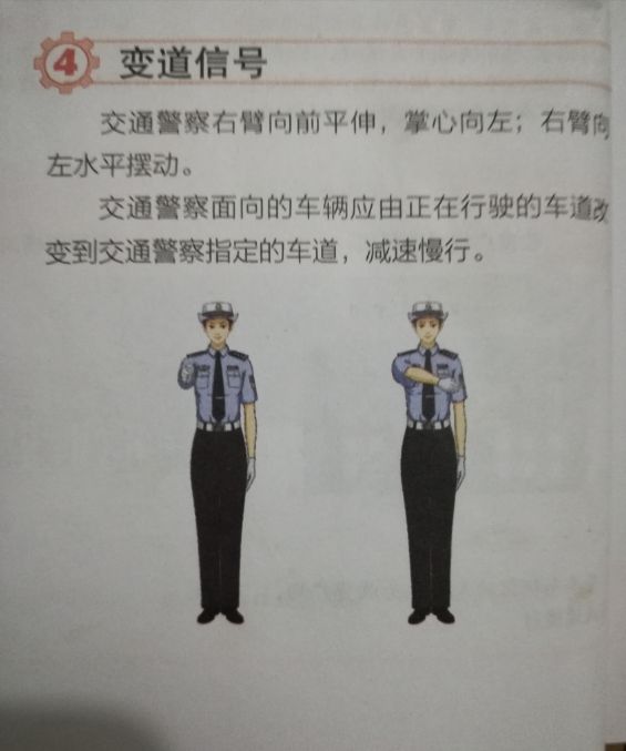 这个一定记住:左手高举(过头顶)都是“停”。左手单举高举示意停,左手高举右手动是“靠边停”。