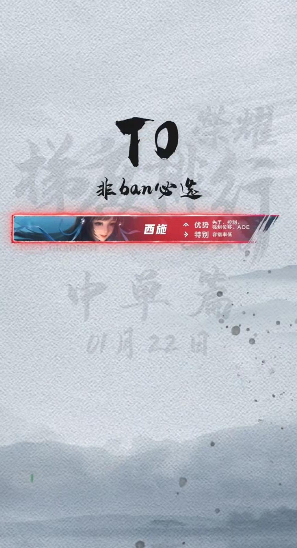 T2:沈梦溪,武则天,嬴政,张良,墨子,女娲,杨玉环,上官婉儿,中单百里守约。