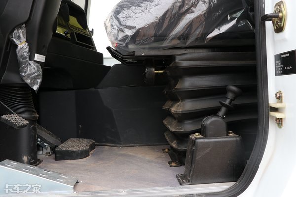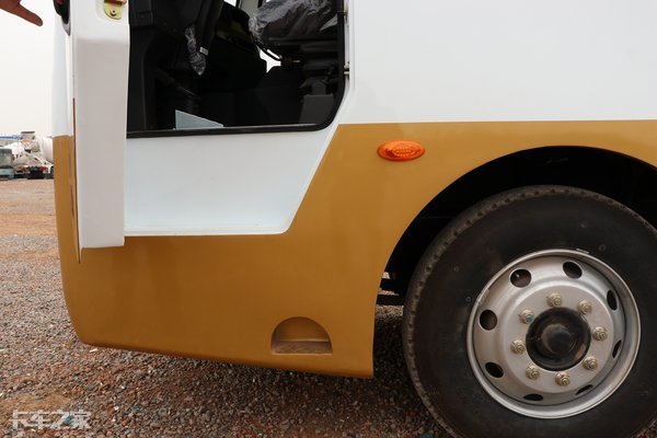 副驾侧的护板里面则装着油箱和尿素罐。这样的设计最大程度上保护了这些部件在发生剐蹭事故时不会轻易受损,即使需要维修更换也很方便,节约我们的运营成本,这也是源自车型的先天优势。