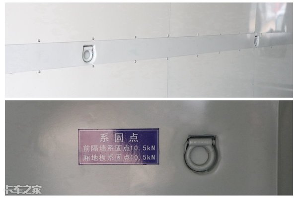 货厢内部装配有多个骨架结构内嵌式拉环,方便固定货物。