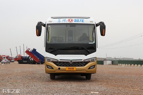 虽然拥有大巴车的“身段”,可超龙的外观看上去却更加犀利。宽厚的镀铬亮条上镶嵌着硕大的东风车标,两侧巧妙地与大灯连接在一起。吊耳式的后视镜拥有更多的调节角度,可以保障良好的行车视野。