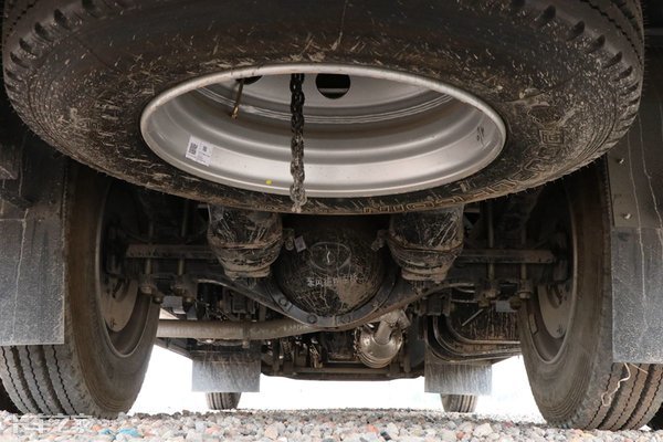 后桥方面采用了东风德纳原厂8T后桥,原厂的可靠性更好,并且零配件比较容易购买,后期维护保养的成本比较低。
