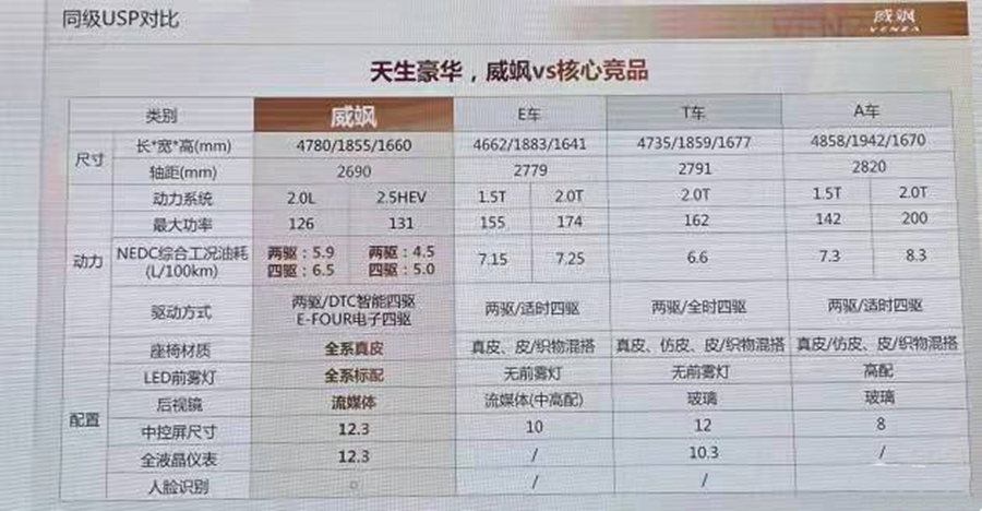 动力部分,威飒将会提供燃油和双擎混动两种版本,其中燃油版搭载的是2.0L自然吸气发动机,最大功率126千瓦,匹配CVT变速箱,高配车型还配有DTC智能四驱系统,NEDC工况下的百公里综合油耗为5.9升—6.5升;双擎混动版搭载的是2.5L自然吸气发动机+电动机的组合,匹配E-CVT变速箱,高配车型还配有E-FOUR电子四驱系统,NEDC工况下的百公里综合油耗为4.5升—5.0升。