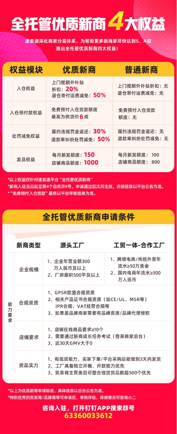 需要注意:优秀的贸易型、品牌型商家仍然可以通过和小二沟通特批的方式申请全托管“优质新商”;详情可咨询小二。