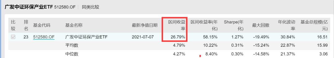 广发中证环保产业ETF512580.OF,年初至今收益26.79%。跟踪的是中证环保产业指数。