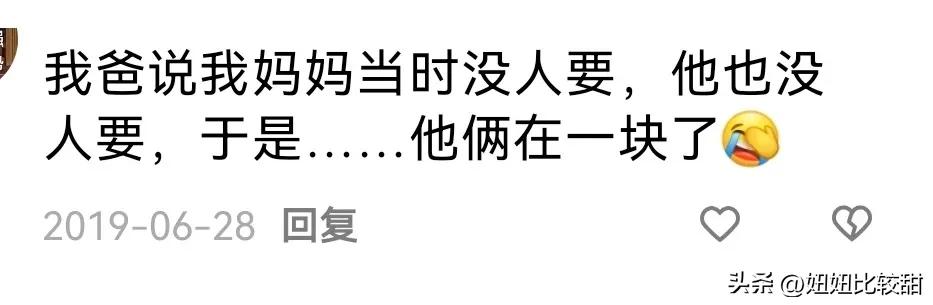 我妈当时跟我姥赌气,说,再有一个说媒介绍我立马嫁,结果那人刚好是我爸。