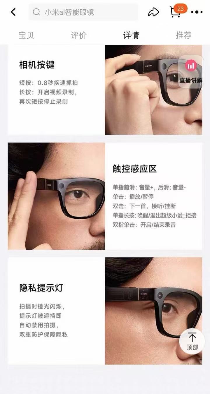 小米AI眼镜支持拍摄引发网友质疑,客服:拍摄时会有橙灯闪烁