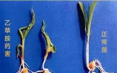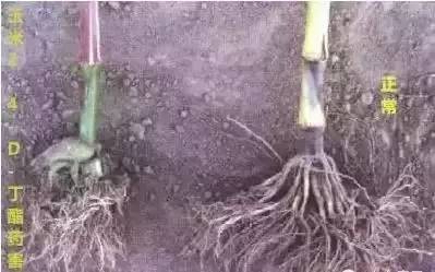 药害症状:施药3-4天后表现心叶变黄、失绿,严重时其它叶片依次变黄。