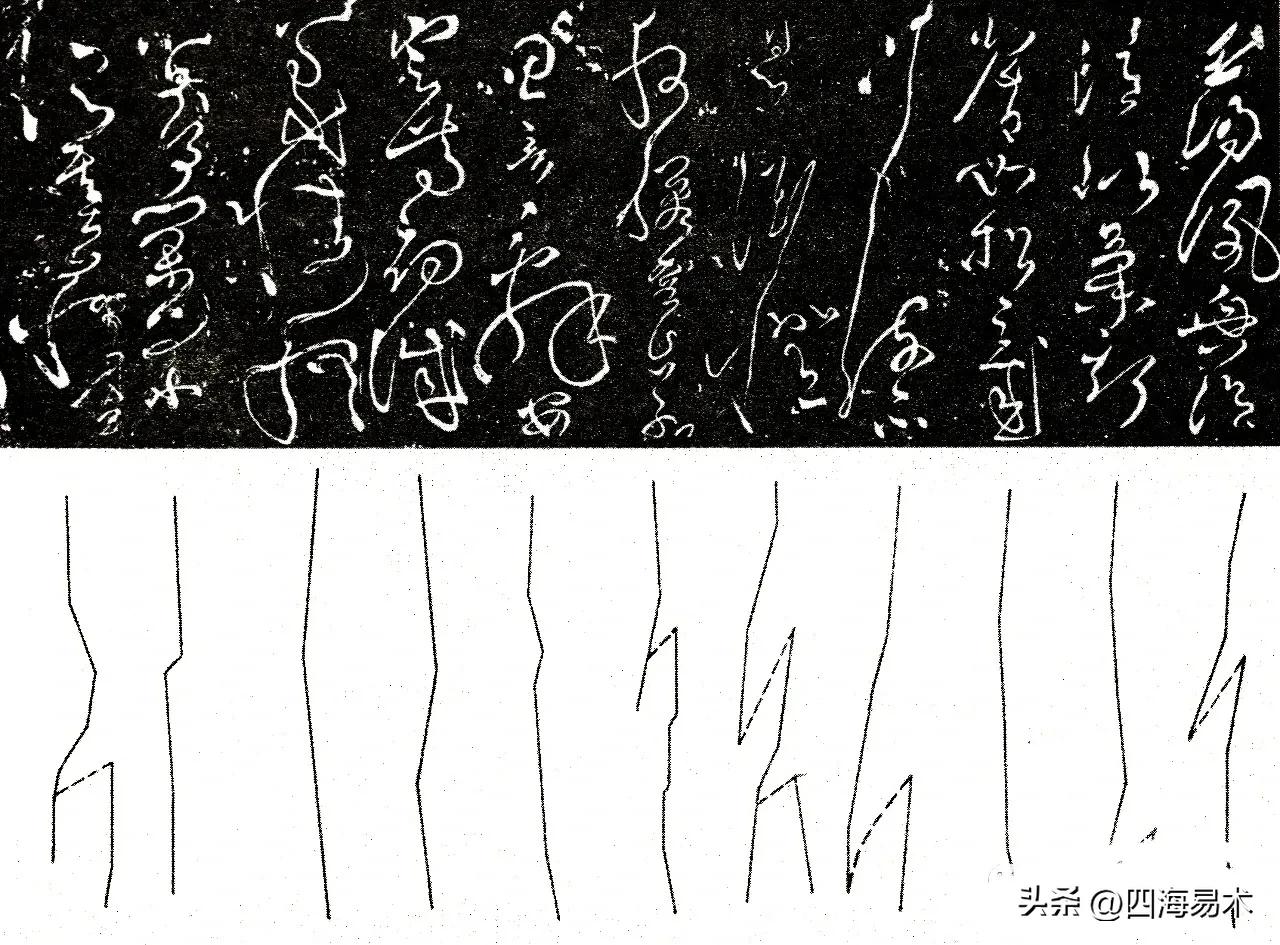 空间的变化,等于线条与线条之间,字与字之间的距离。当这些距离进行自然的连接,书写的节奏就产生了,节奏是由空间和字势决定的。第一个字和第三第四个字的位置得到了确认,字的缝隙(空间)在脑海中就有了安排。