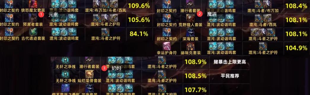 然后再来看看现阶段各个职业的“最强搭配”: