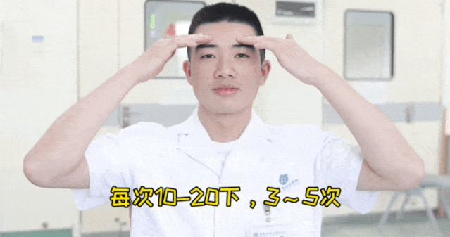 动作一:抗阻抬眉运动(每次10~20下,3~5次)
