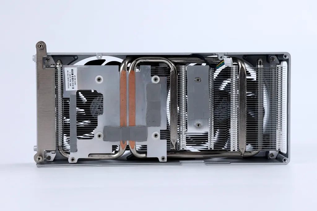 散热方面,影驰表示这款显卡采用了新一代寒光星 δe 散热系统采用了一体式垂直散热鳍片,散热整体覆盖了核心、显存、供电,为 PCB 及元器件全面散热。这款显卡配备 2*Φ6mm 镀镍复合热管,采用热管直触 GPU 工艺,加速热量传导,有效导热散热。
