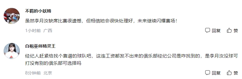 李月汝因球队欠薪风波缺席本周比赛 不排除转投其他队
