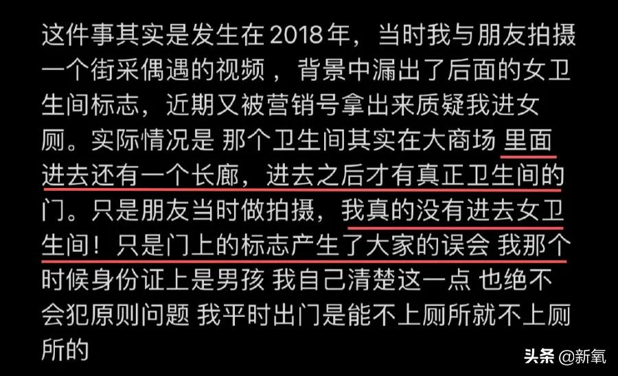 艾比在这次宣布变性的博文里解释了这件事,称自己其实并没有真的进入女厕所。