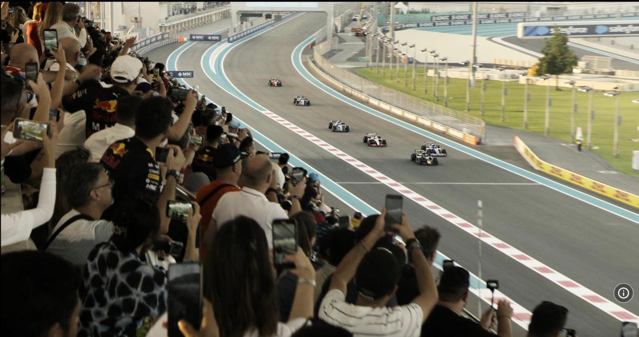 在去年12月最后一站阿布扎比站结束之后,法拉利车队的勒克莱尔和奔驰车队的拉塞尔还留下加班,帮助剧组拍了最后领奖台的镜头。