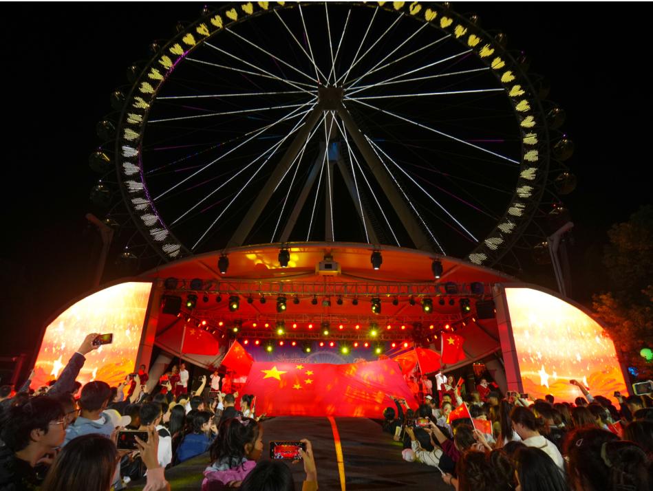 国庆假期首日南京市民出游热情高涨,万余名游客齐聚南京欢乐谷,共同感受浓浓的节日氛围。“谷风游园会”超百场精彩演艺和活动轮番上演,无论是倍受小朋友们热爱的“福瑞随舞”或是再度回归的“小黄鸭大巡游”,都让人们感受到浓浓的节日氛围。欢乐谷王牌演艺花车大巡游再度升级为《潮酷大巡游》,新增国潮、兽装、新中式等表演方队。流光溢彩的主题花车配上动感的音乐,带来精彩绝伦的奇妙夜嘉年华。