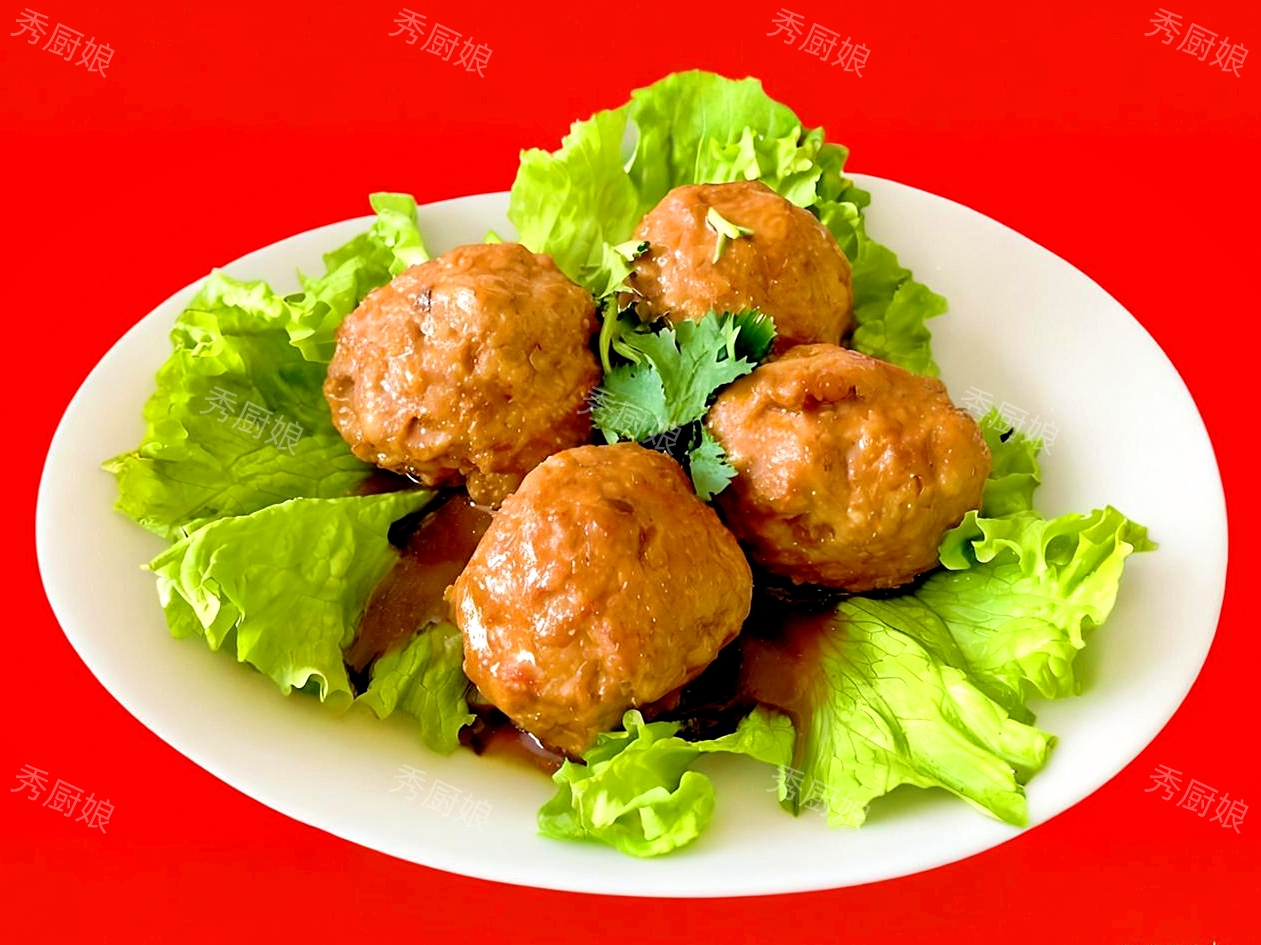 7.出锅装盘:炸好的肉丸子控油后,摆盘即可上桌享用。根据个人喜好,可搭配蘸料如椒盐、甜辣酱等,增添风味。