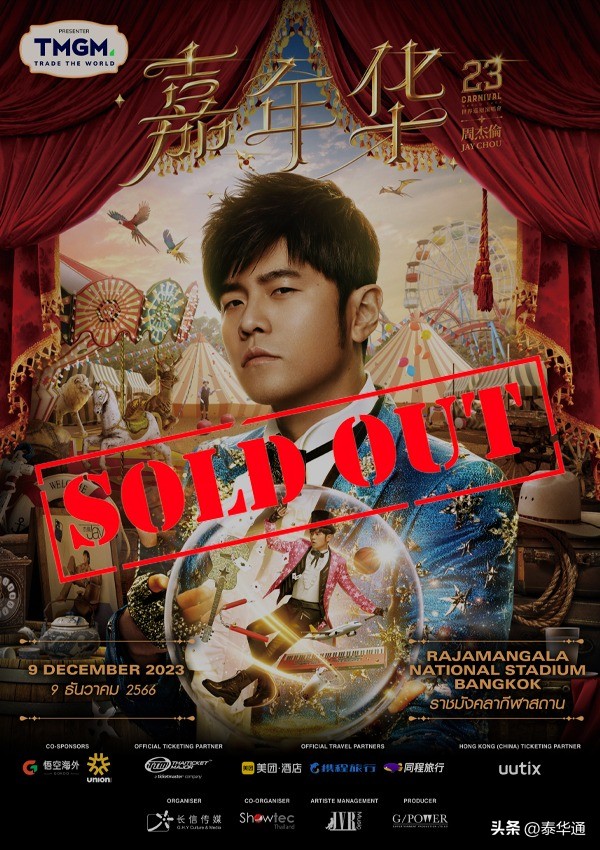 据长信传媒及泰国TTM 官方9月30日下午发布的消息,周杰伦《嘉年华》世巡演唱会曼谷站门票已售罄。
