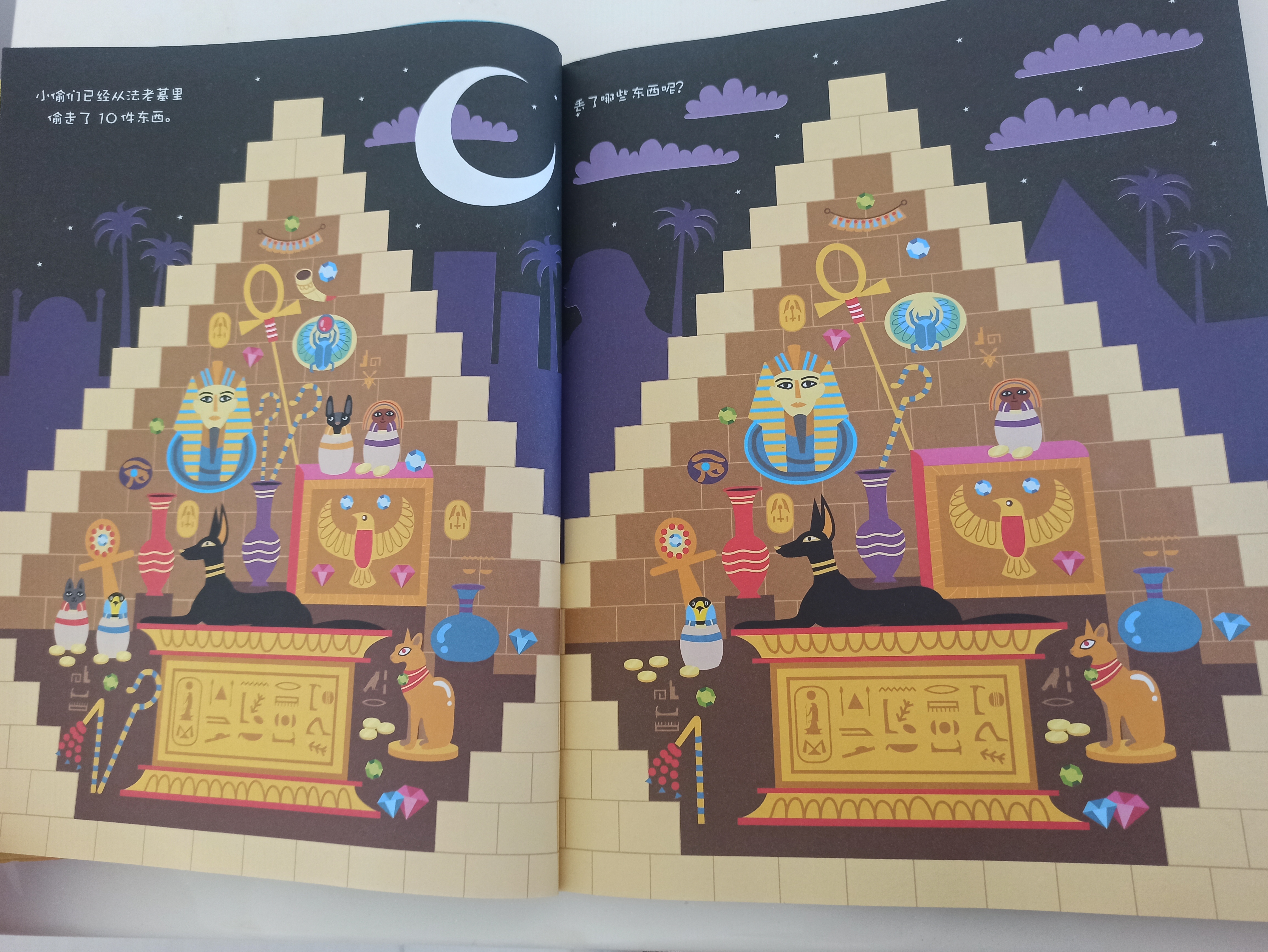 你能发现右边的图比左边少了哪些东西吗?找不同是孩子非常喜欢的游戏,还能锻炼孩子的观察能力和记忆力。