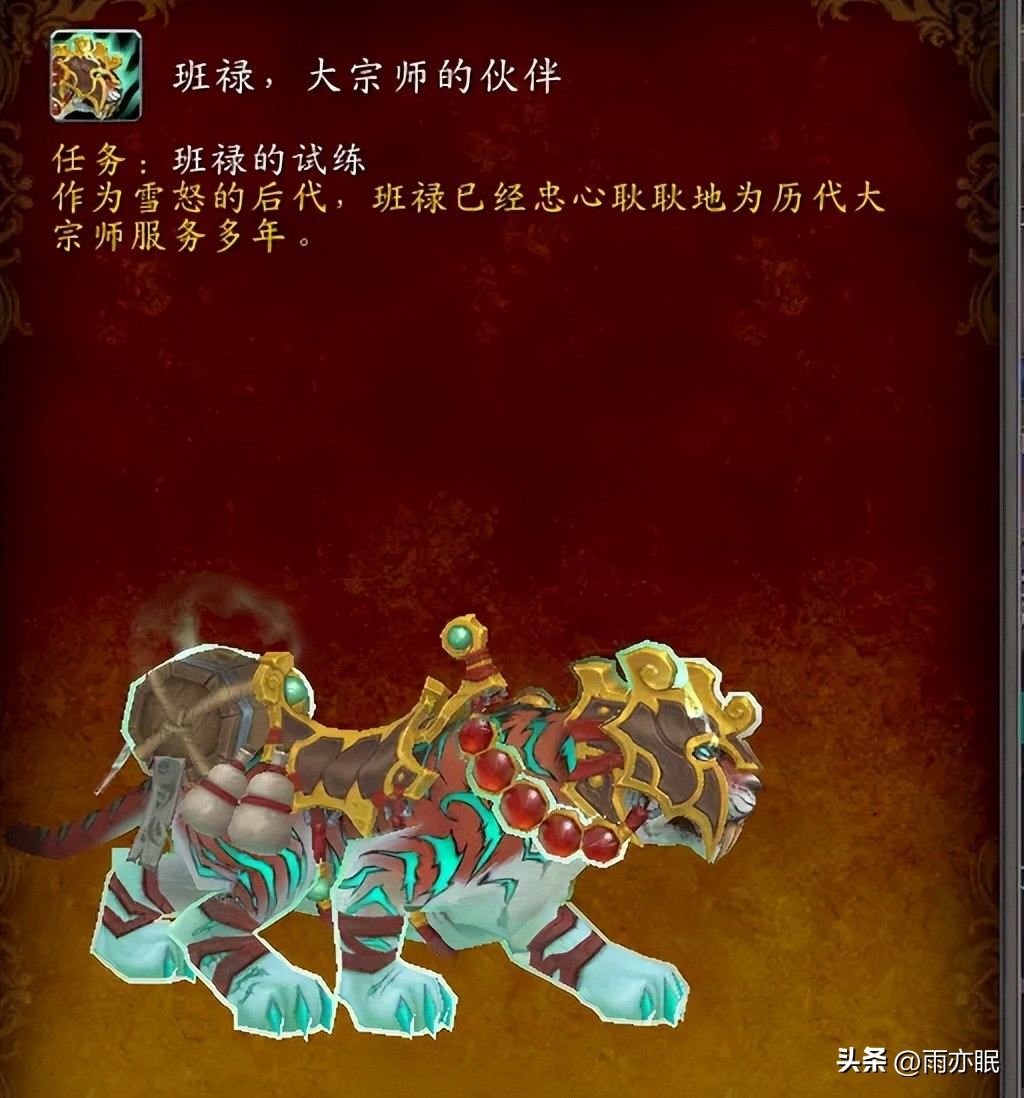 武僧职业坐骑:班禄,大宗师的伙伴,对应任务:班禄的试炼