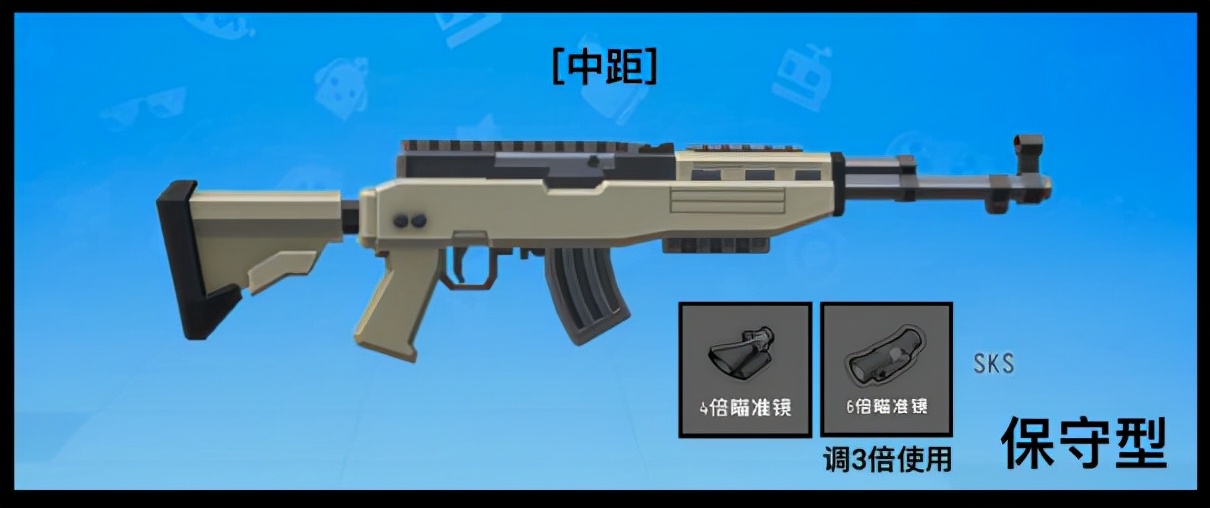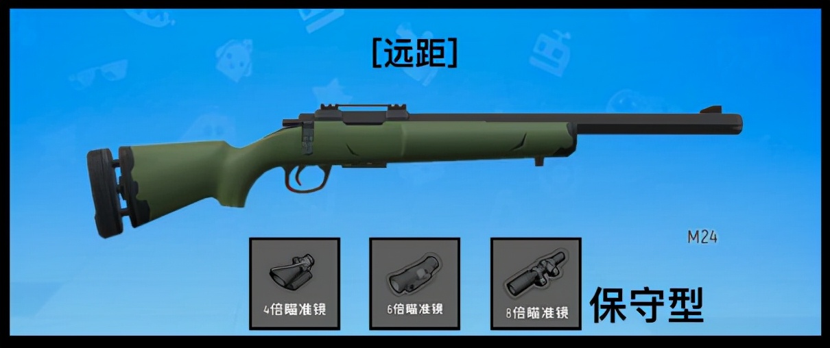 根据武器特色分为近距、中距、远距三类,并根据屏幕大小和作战距离标示出适合使用的瞄具。