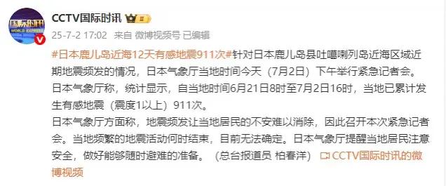 针对日本鹿儿岛县吐噶喇列岛近海区域近期地震频发的情况,日本气象厅当地时间7月2日下午举行紧急记者会。
