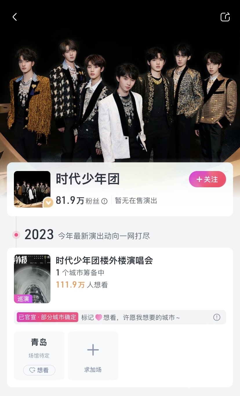 大麦网时代少年团演出信息。(来源:大麦网截图)
