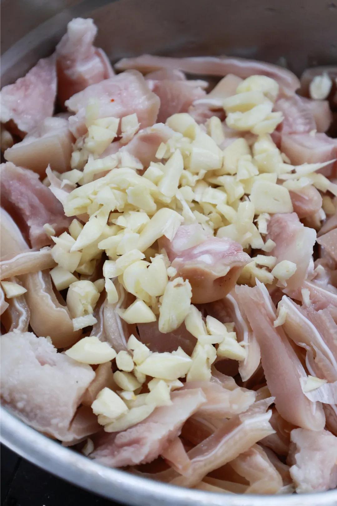 焯过水的猪耳朵搭配一碗灵魂料汁